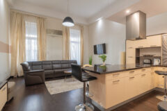 Perfectly located 1 Bedroom apartment located at the Liszt Ferenc Square in a very stylish classical and partially renovated building with elevator. The apartment is located on the 1st floor and has a classical Viennase design. The kitchen is very well equipped with all the necesarry utensils for cooking. The apartment has a full bedroom, a loft bedroom and a huge living room. It has original wooden floor what is an unique part of the apartment. The apartment has huge and bright spaces. The furniture and interior can be modify based on the requirements. Great place for living, shooting commercials, series.
