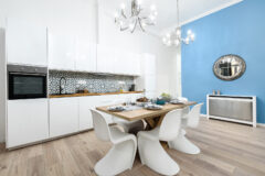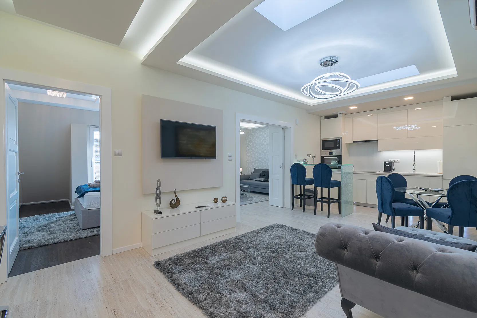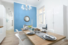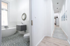 Beautifully decorated 2 bedroom apartment in the heart of the downtown of Budapest. Located on the third floor in a classic house. The apartment has a modern, clear style. Grey colours and scandinavian style are dominating, with straight lines with a cleared pop-up feeling. The kitchen is fully equipped. Great place for living, shooting commercials, series.