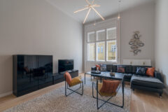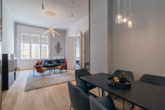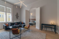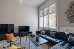 Very well located penthouse apartment Absolutely stunning apartment! Modern, slightly industrial style classic apartment located in a secession house in the downtown close tot he Boscolo Hotel and the New York Coffee House. The apartment is bright, spacious and carefully designed, taking care of small details like original wall papers and the wooden floor. The apartment has a huge living room fuctioning as a social area too. From the living room, there is an access to the bedroom and the bathroom. The kitchen is fully equipped. Great place for living, shooting commercials, series.